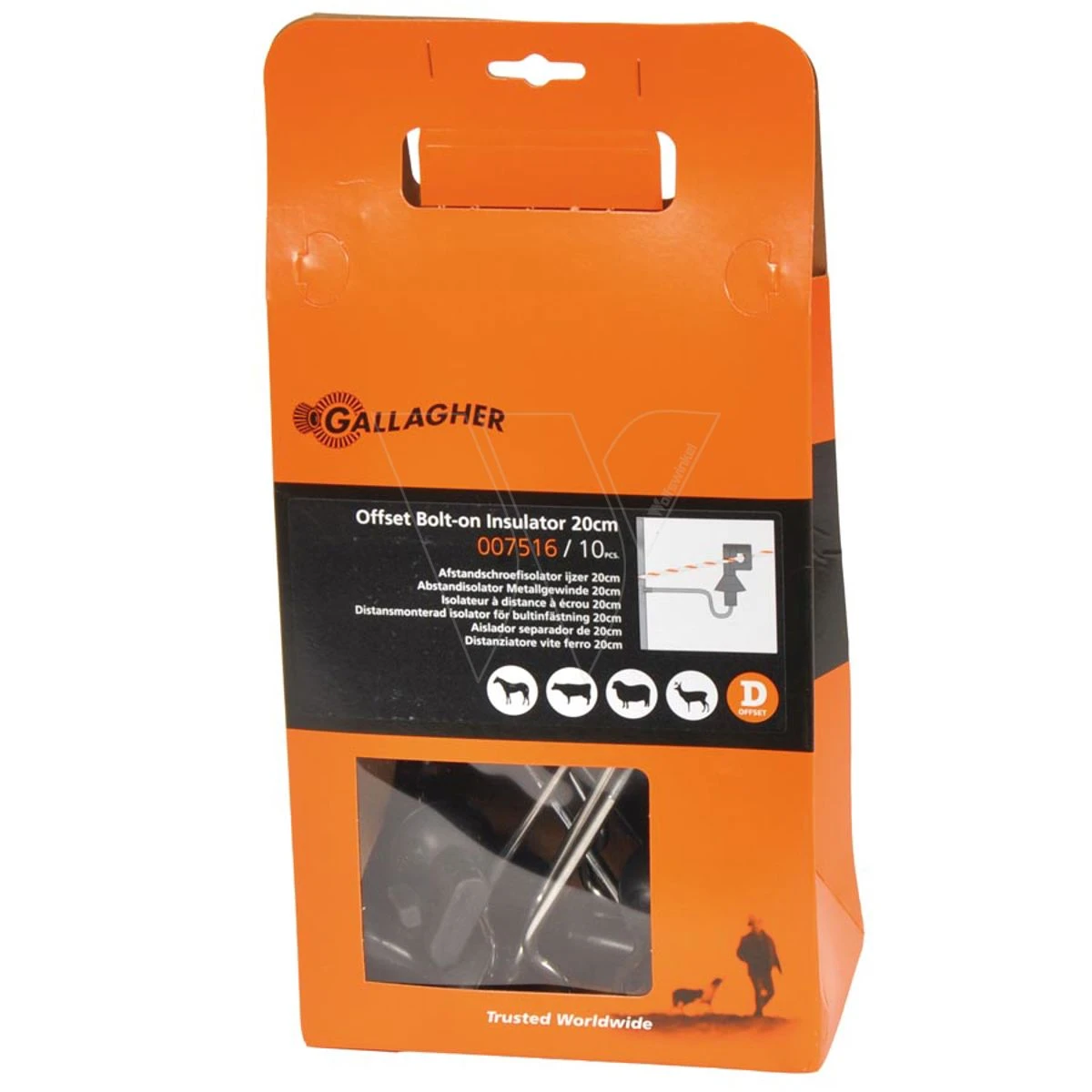 Deze afstandisolator is bedoeld voor het elektrificeren van niet-elektrische afrasteringen met betonnen en ijzeren palen. De isolator is geschikt voor cord en kunststofdraad (tot 9mm). Met 12cm schroefdraad. De productgarantie op deze afstandisolator is 2 jaar.