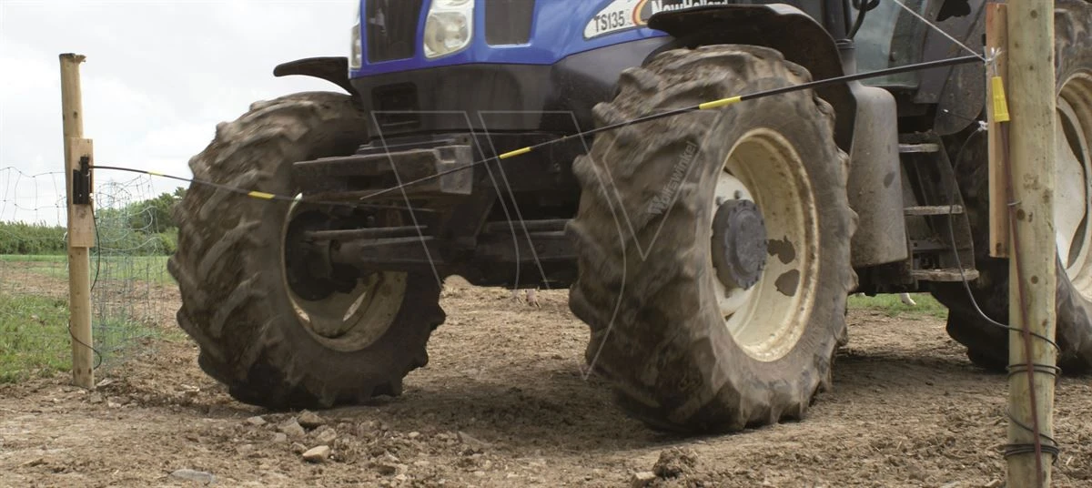 Een compleet hek, eenvoudig mee te nemen en op te hangen op plaatsen waar u vaak door een hek moet rijden. Een kant-en-klare doorgang voor een permanente afrastering dus! De trekker duwt het hek, dat onder spanning staat, zelf open en het hek sluit automatisch. Het hek heeft een maximale breedte van 3,70 meter.