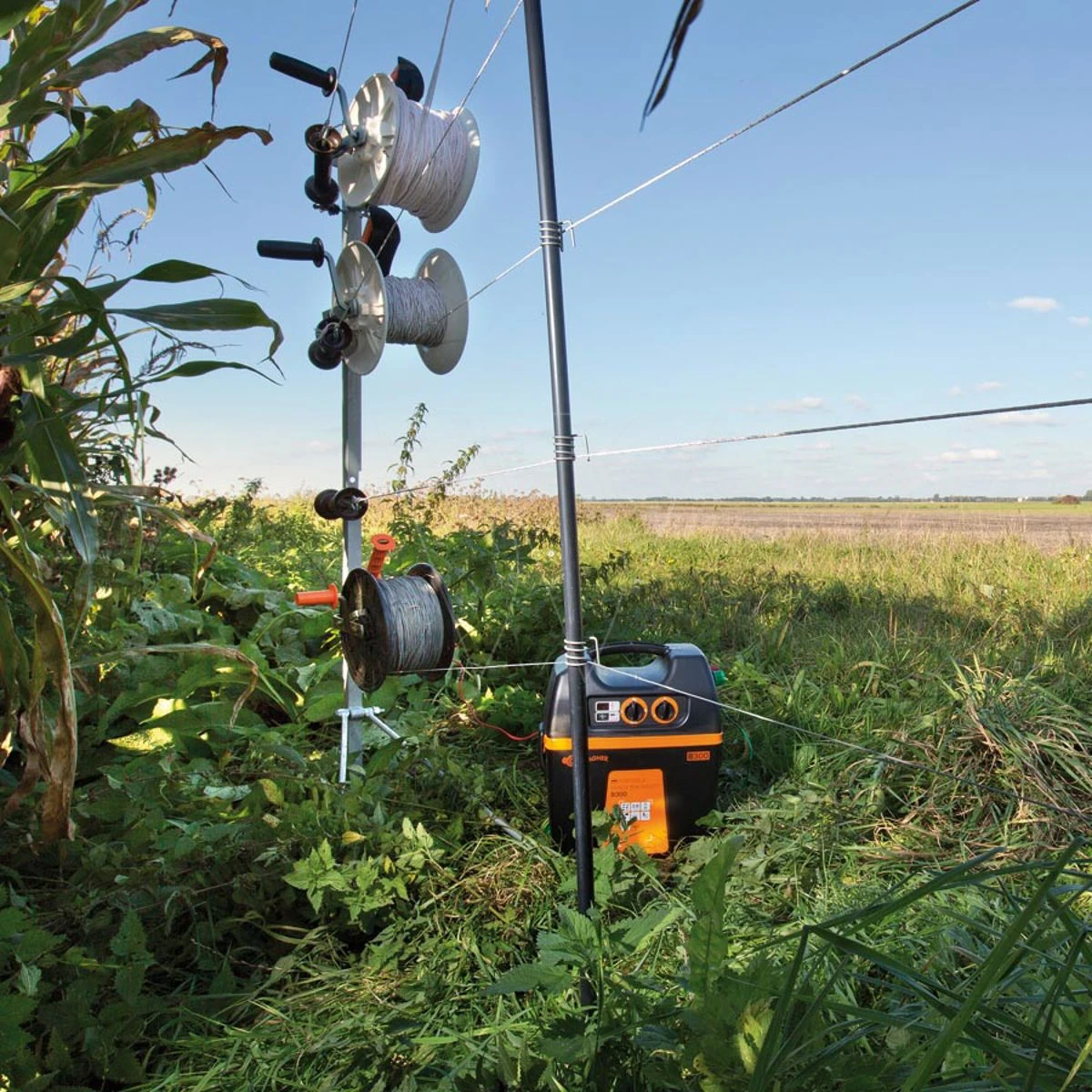 U kunt meerdere draden monteren met behulp van verstelbare veertjes. Deze verstelbare veertjes zijn op alle gewenste hoogtes te monteren. De topisolator is afneembaar zodat de verstelbare veertjes eenvoudig bevestigd kunnen worden.