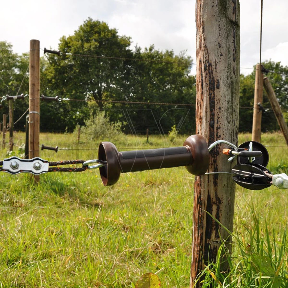 In de Softgrip poortgreep past cord of kunststofdraad (Vidoflex). U kunt kiezen uit een oranje kleur voor goede zichtbaarheid of een terra kleur waarbij de poortgreep opgaat in de natuurlijke omgeving.