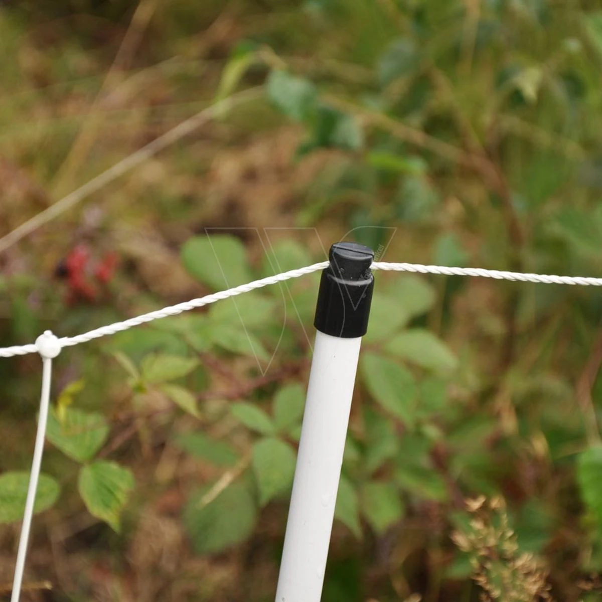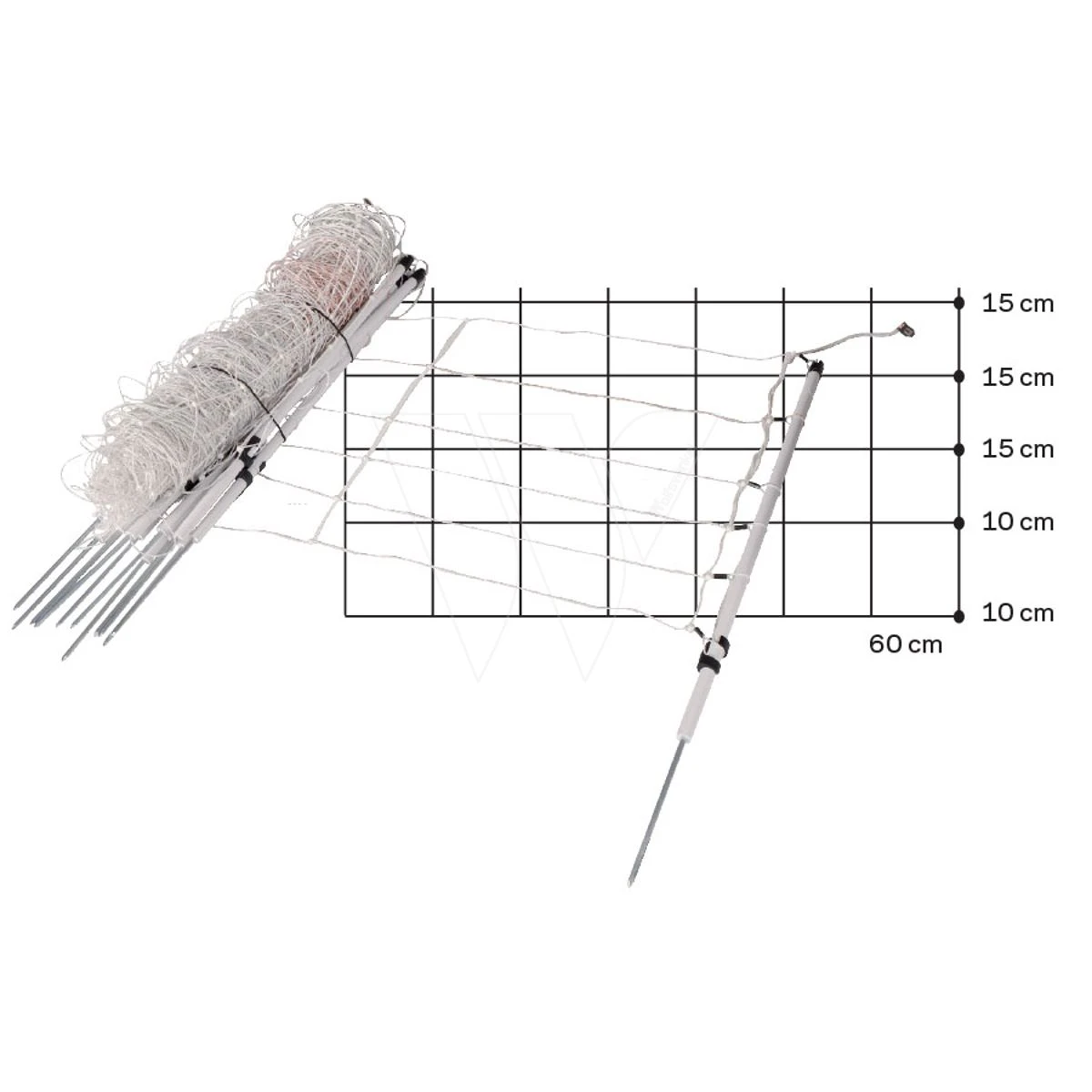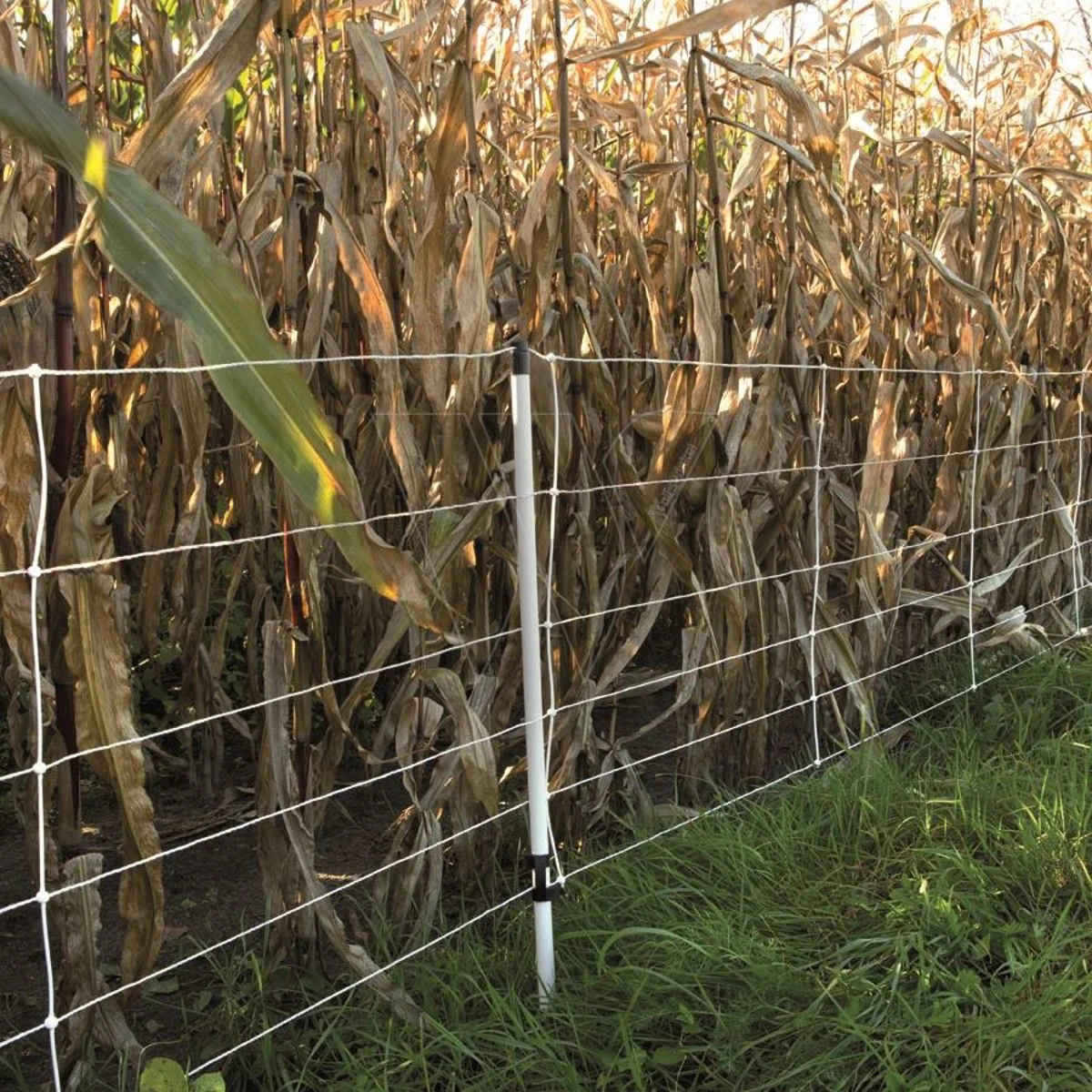 Het afrasteringsnet is inclusief 14 palen (Ø 19 mm) met enkele pen die in het net gemonteerd zijn. De palen zijn 76 cm hoog.