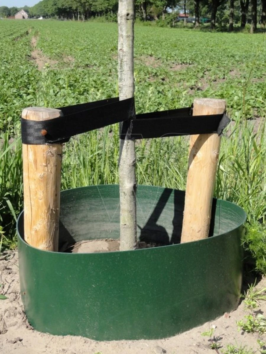 Gietrand voor het water geven bij jong aangeplante bomen. Door het gebruik van een gietrand kan er efficiënter water worden gegeven, zodat de boom dit optimaal kan benutten.