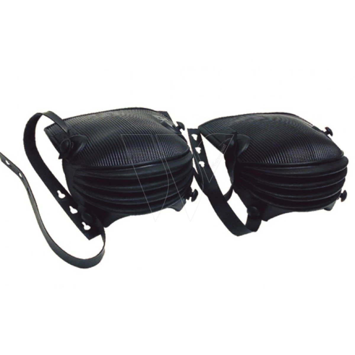 Lang model. Solide vol rubberen uitvoering. Uitgevoerd met 4 vouwen en wisselbaar kussen. Geschikt voor o.a. stratenmakers. Type:harmonica nummer 13-V. Verpakt per paar.