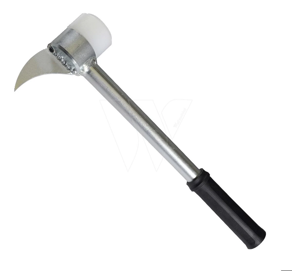 Solide gelaste constructie met kunststof impactinzet en handvat.