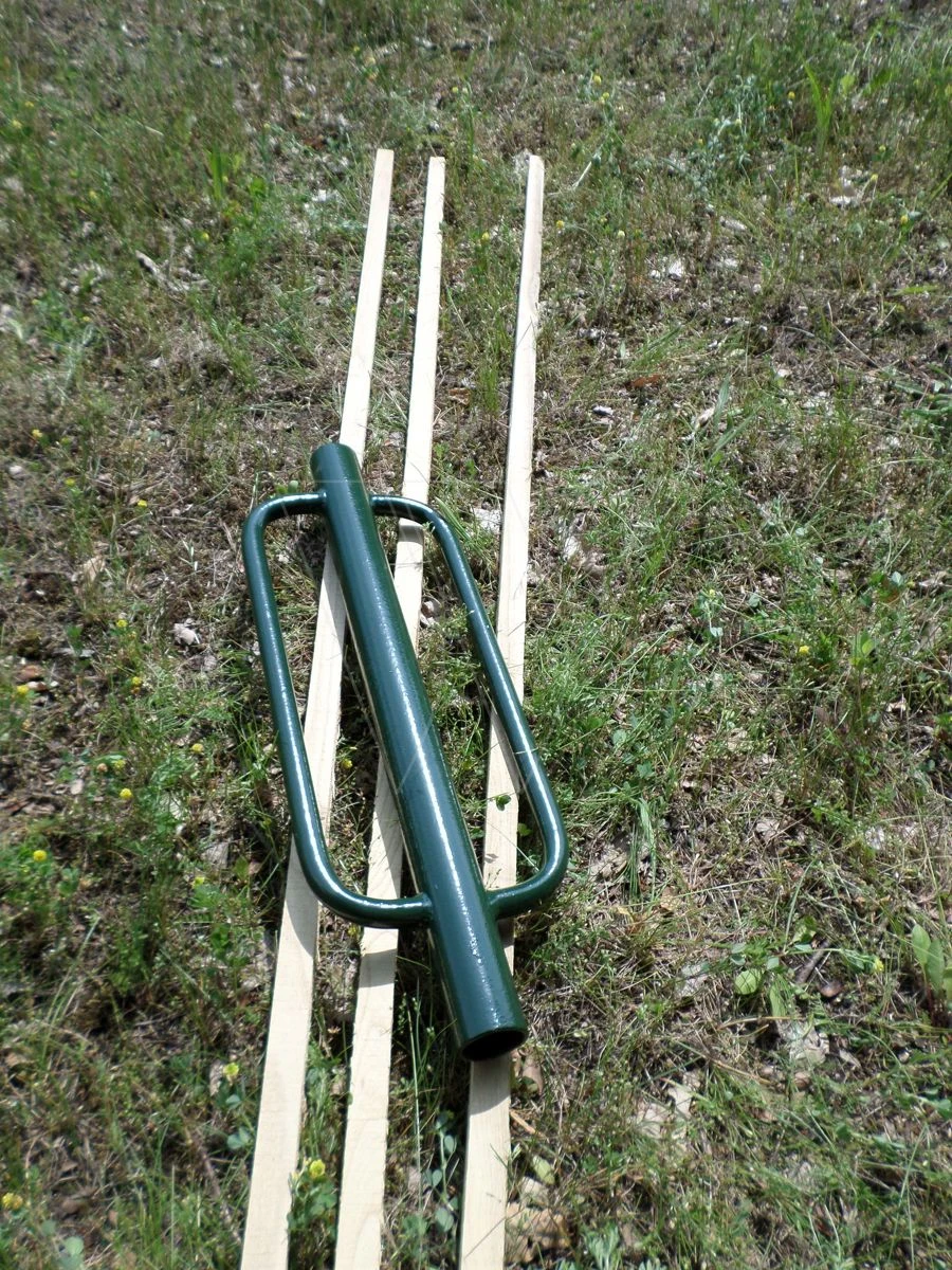 Metaalram voor het gemakkelijk in ”rammen” van steunstokken en of tonnik/bamboe stokken
