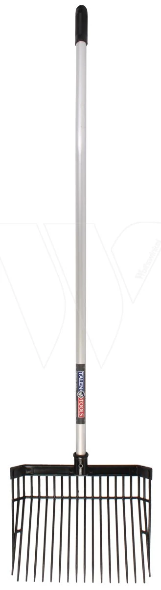 Deze kunststoffen paardenstalvork is geschikt voor het schoonmaken van paardenstallen. De tanden van de paardenstalvork staan dicht bij elkaar zodat niets tussen de tanden kan wegglippen. De vork is voorzien van een 140cm aluminium steel. Bij het gebruik van deze vork buigt u uw knieën, niet uw rug! Daarna duwt u de vork in de berg afval/mest en neemt zoveel op als mogelijk is zodat u het dan op de door u gekozen plek kunt deponeren. Bij zwaarder materiaal raden we u aan niet teveel materiaal op de vork te nemen, dit is een behoud voor uw vork, schouders, rug en knieën.