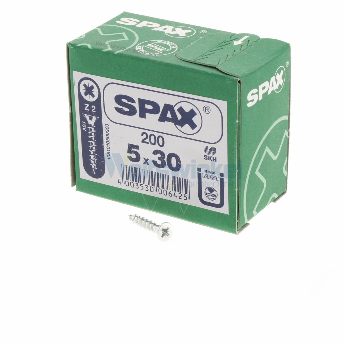 Het betreft hier een spaanpl schr vz pk 5.0×30 poz (200) spax , dit is een origineel product van Spax. Met het artikelnummer SPAXSPPZ/5X30.