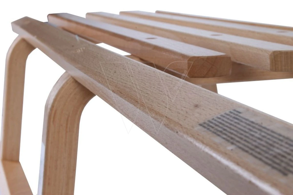De buitenste latjes zitten schuin aan de slede, voor meer zitcomfort.