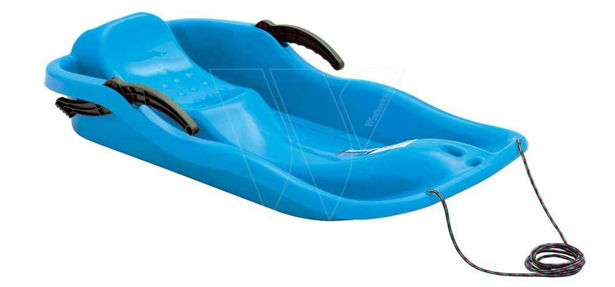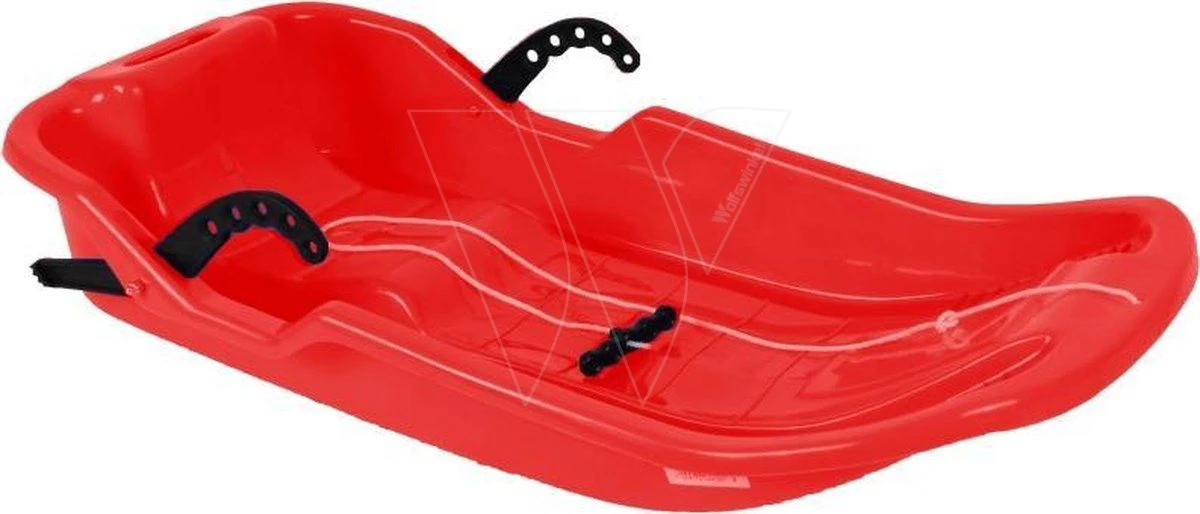 Deze slede is geschikt voor kinderen vanaf 4 jaar. Aan beide zeiden van de slee zit een zwarte hendel, hiermee kunt u remmen en besturen. Vooraan de slee is een trekkoord gevestigd. De afmeting van de slee is 830x420mm.