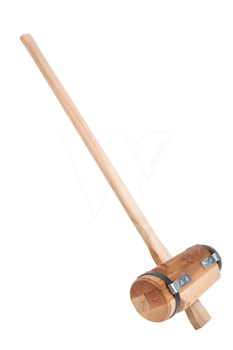 Deze ronde Friese tuinhamer is geschikt voor het palen in de grond slaan, bijv. voor het maken van een afrastering om een weiland. Hiervoor kunt u beter geen voorhamer gebruiken, want dat kan zorgen voor schade aan de houten palen. Deze tuinhamer is aan beide kanten voorzien van een metalen band: dit voorkomt dat de hamer gaat zwellen en zorgt dus voor een langere levensduur. De afmeting van de hamer is 350x150mm. Aan de hamer is een steel van 90cm gevestigd.